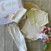 El ajuar incluye todo lo que tu pequeño necesita para sus primeros días, desde body, ranita y gorro. Un conjunto completo para que tu bebé esté a la moda desde el principio.